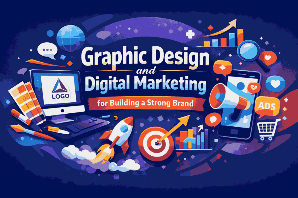 In the modern digital era, building a strong brand is essential for businesses that want to grow and succeed. Graphic design and digital marketing play a major role in shaping how a brand looks, communicates, and connects with its audience. Graphic design creates a strong visual identity through logos, colors, typography, and creative layouts, while digital marketing promotes these elements across platforms like social media, websites, and search engines. When combined effectively, they help businesses attract attention, build trust, strengthen customer relationships, improve brand recognition, and stand out in today’s competitive online environment.